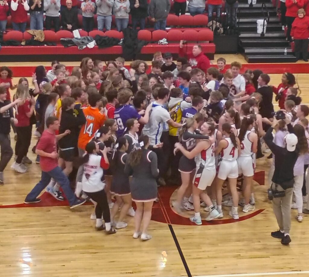 That’s why Forest City’s victory at home over Algona was so special. They played phenomenally, especially in the second quarter. While every bounce versus West Marshall seemed to go the Trojans way, every bounce versus Algona seemed to go the Indians way. And to top it all off, Forest City was able to celebrate at center court of their own gym, in front of their own fans, for the first time.
